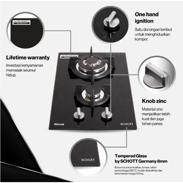 PROMO Rinnai Kompor Gas Tanam 2 Tungku Tempered Glass RB-312NGB RB 312NGB RB 312N GB ORIGINAL