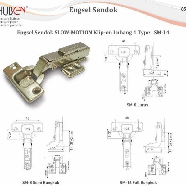 MURAH (1 pasang) Engsel lemari huben slow motion engsel sendok huben Soft Close Clip On Hidrolik SM-L4 harga per