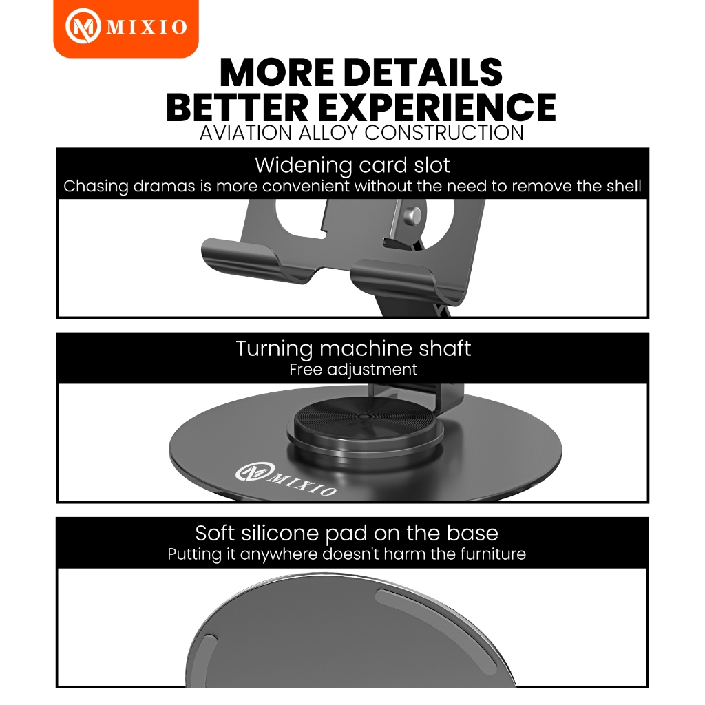 MIXIO ZM-12 STAND HOLDER PHONE 360 ° ROTASI UNIVERSAL HOLDER HP DI MEJA STAND DUDUKAN HANDPHONE DAN TABLET LIPAT ANTI SLIP