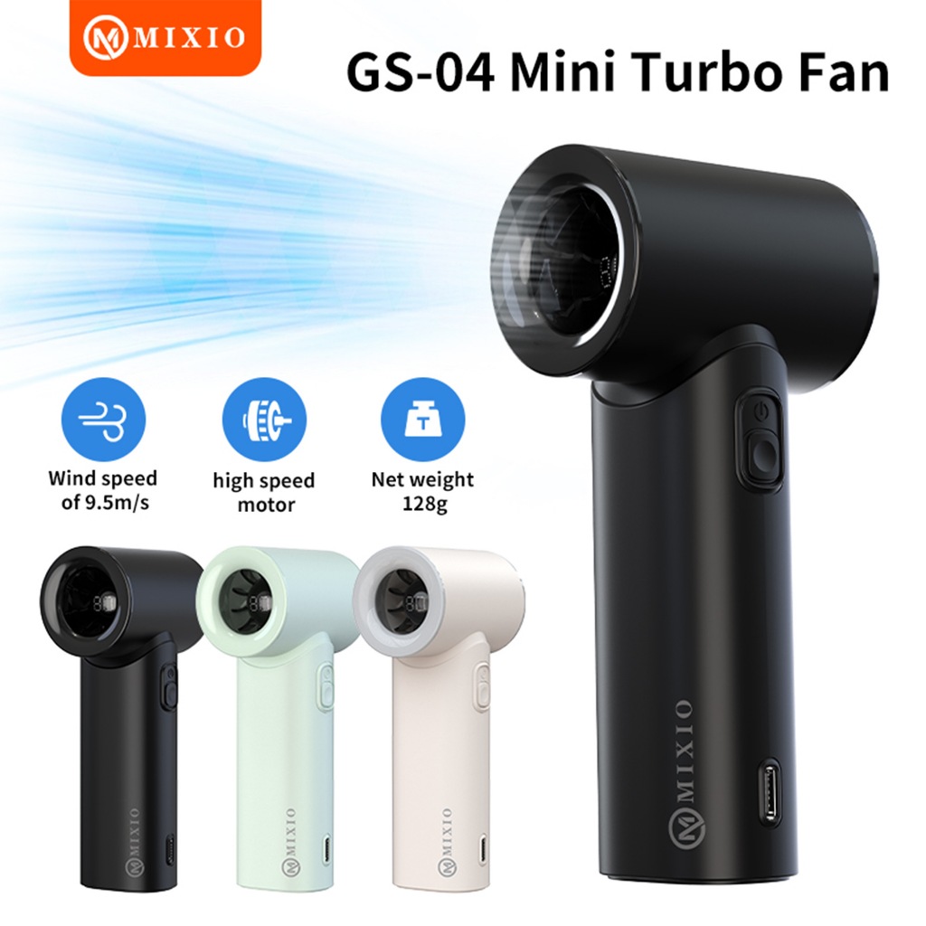 MIXIO GS-04 MINI KIPAS ANGIN TURBO STRONG PORTABLE HANDHELD RECHARGEABLE MINI FAN LIPAT HIGH SPEED 17400RPM