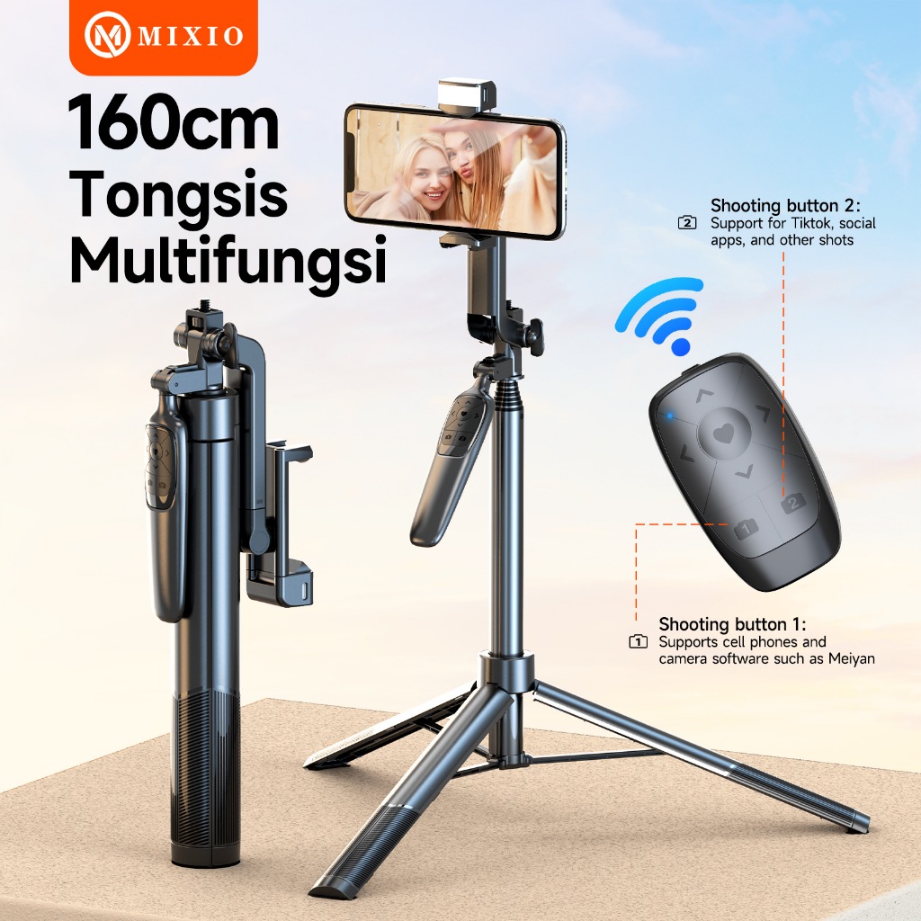 MIXIO A66 - 160CM TONGSIS BLUETOOTH SELFIE STICK TRIPOD WITH LED LIGHT