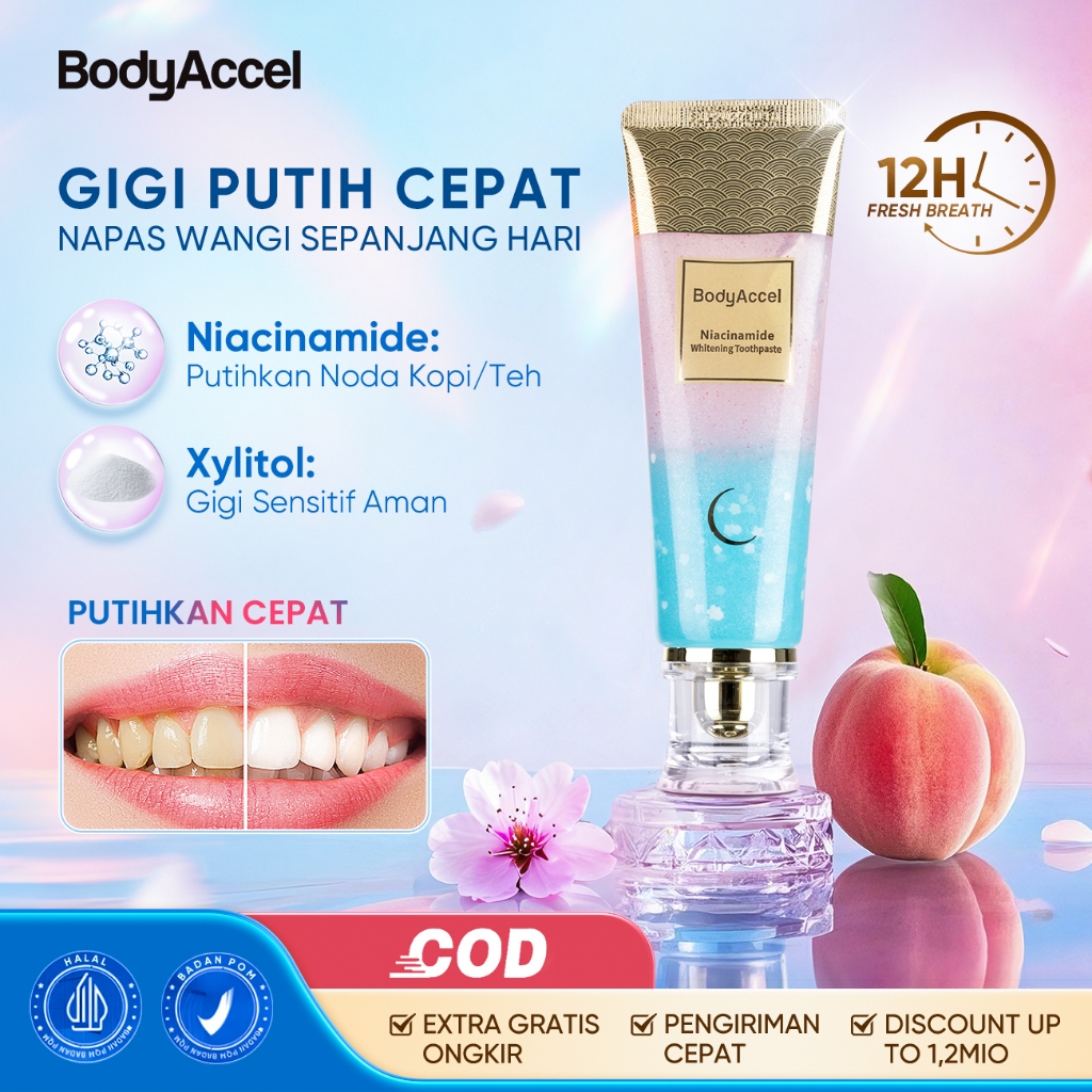 Bodyaccel Pasta Gigi Pemutih Niacinamide dan Menghilangkan Noda Kopi Teh 100g [Newly-Launched]