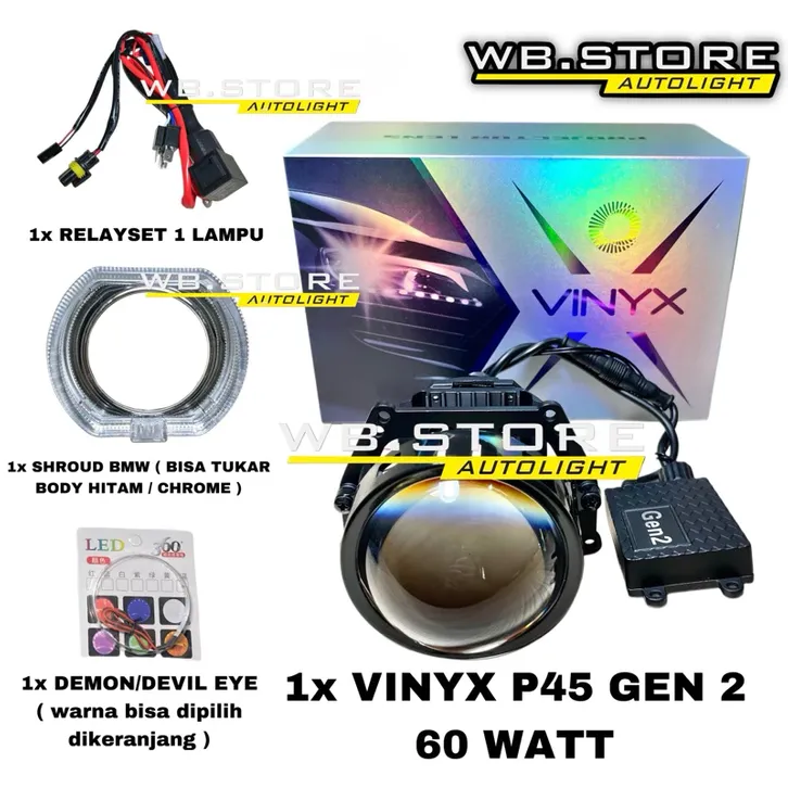 PAKET LENGKAP BILED VINYX P45 55 WATT 3 INCH PURPLE LENS LAMPU BILED VINYX P45 AES TURBO SE BILED CR7 PRO7