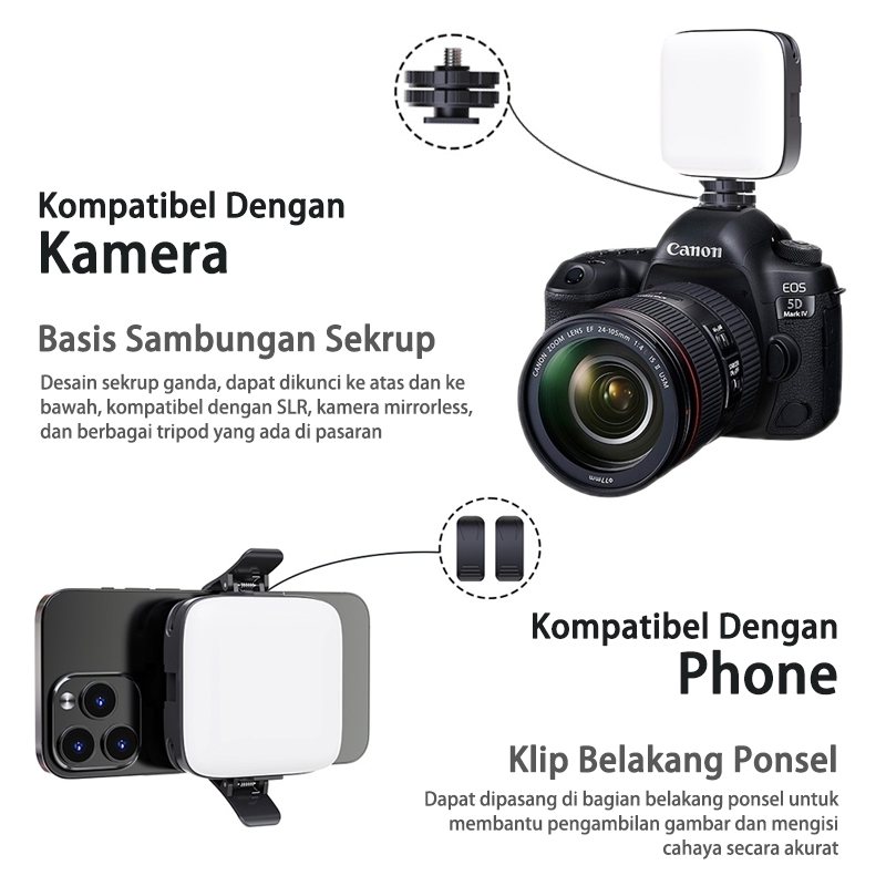 AKONA LAMPU SELFIE PONSEL LED LAMPU FOTO VLOG LAMPU KAMERA / PH / KOMPUTER UNIVERSAL SUHU WARNA 3000-9900K (SET KSESORI GRATIS)