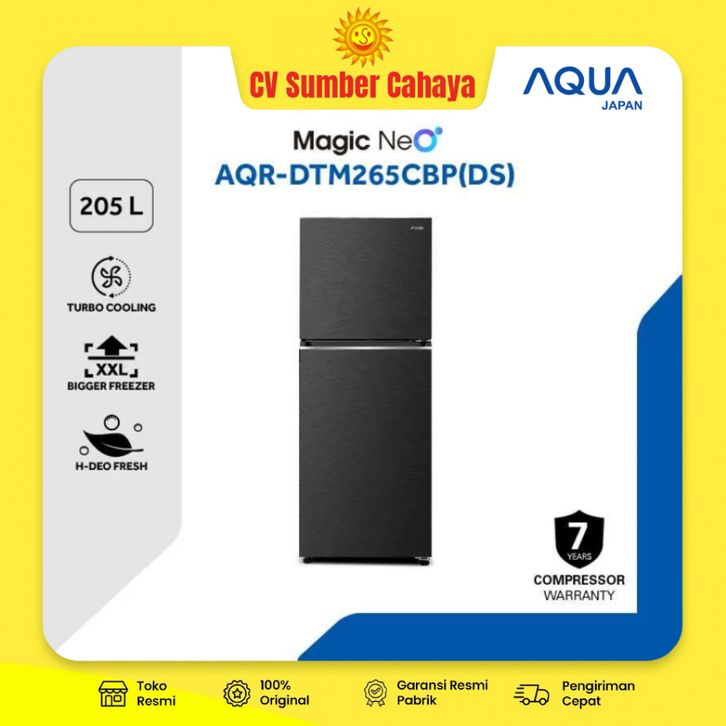 PROMO AQUA Kulkas 2 Pintu AQR-DTM265CBPDS Kulkas 2 Door 205L Turbo Cooling AQR DTM 265 CBP DTM265 ORIGINAL