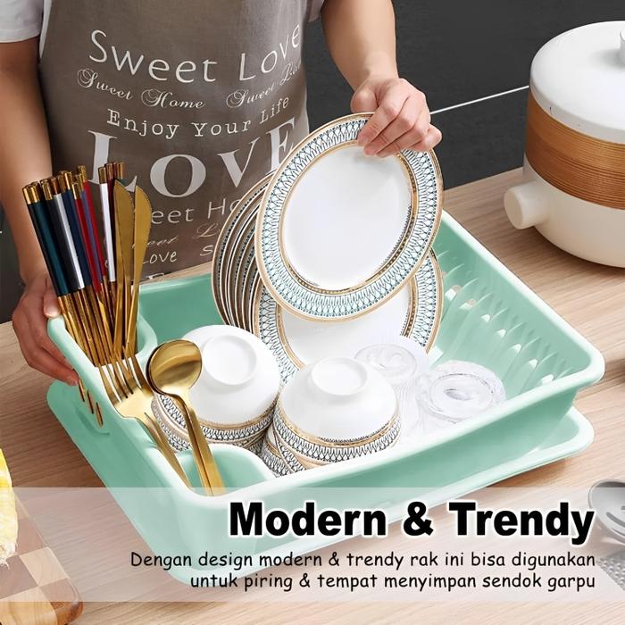 Rak Piring Multifungsi / Rak Piring Plastik Serbaguna Dengan Nampan Rak Tirisan Piring Wastafel Pink - Biru