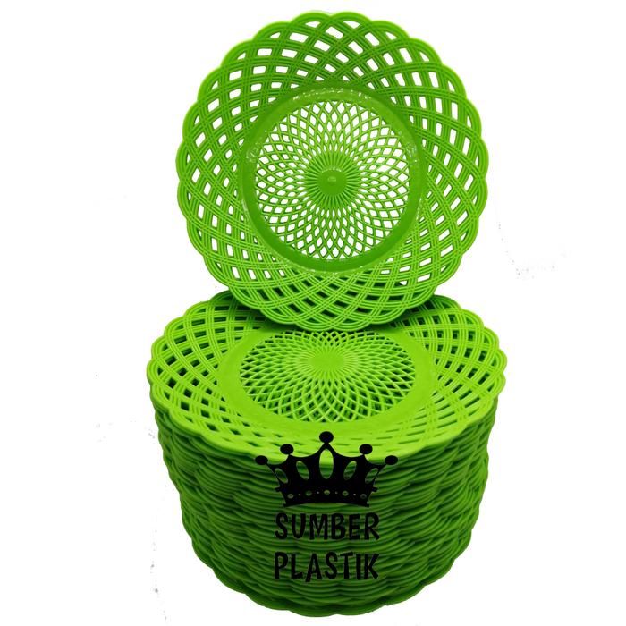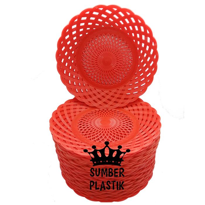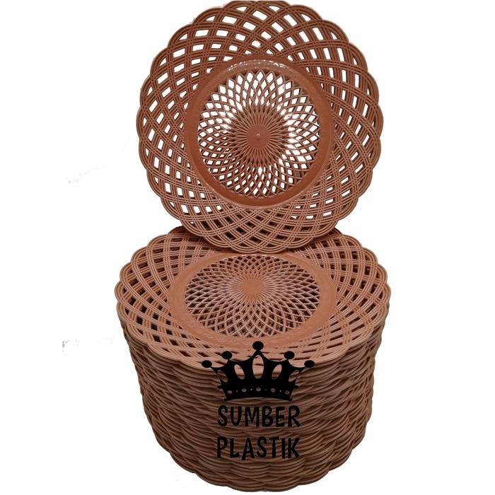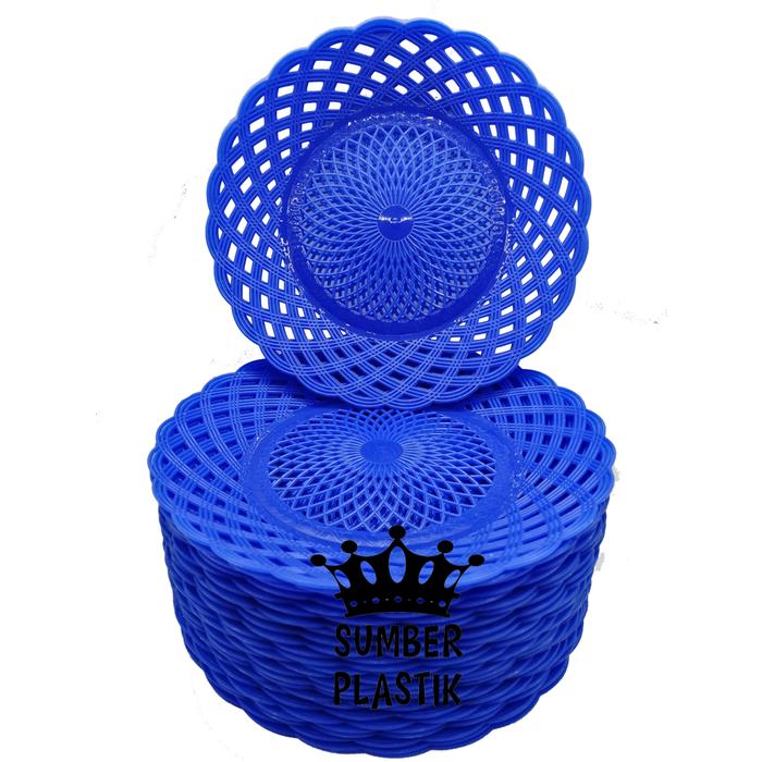 Piring Rotan Plastik Lusinan (1Lusin/12pcs) Murah Meriah biru coklat - MERAH