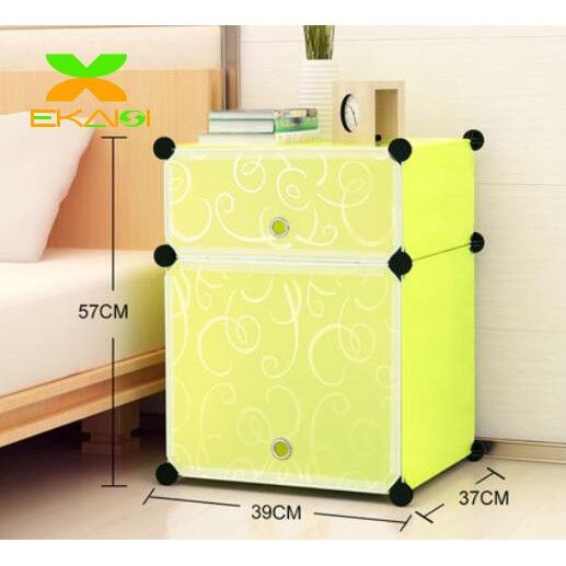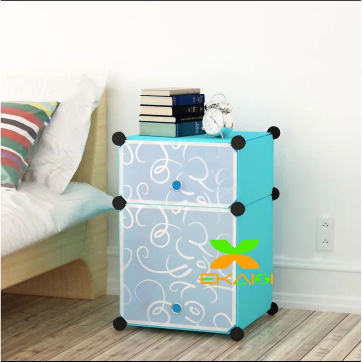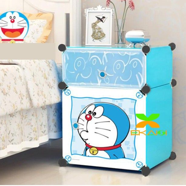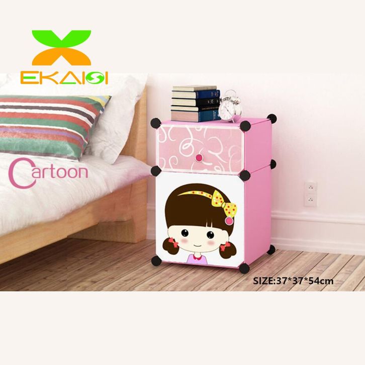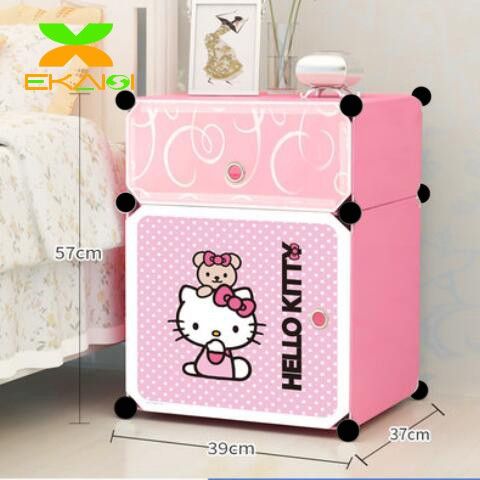 Ekaisi Lemari pakaian plastik bedside table anti air rak buku susun 2 pintu/kotak pintu hello kitty