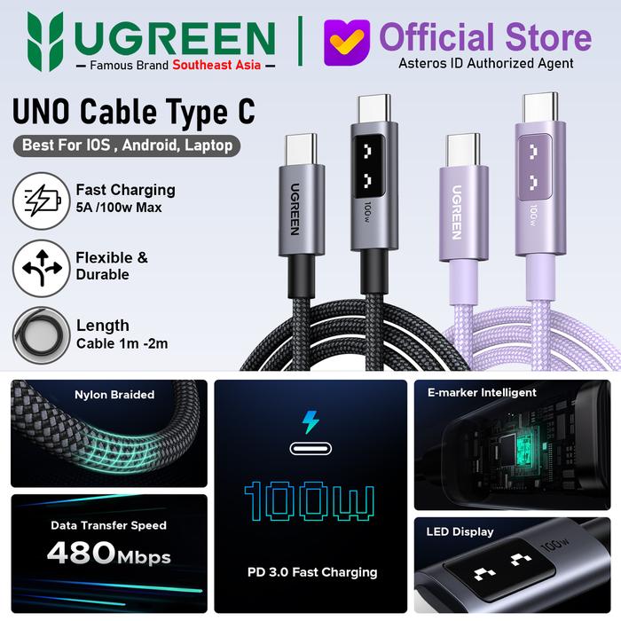 UGREEN Kabel Data Smart Display Uno Series PD Type C To Type C Fast Charging 100w 5A