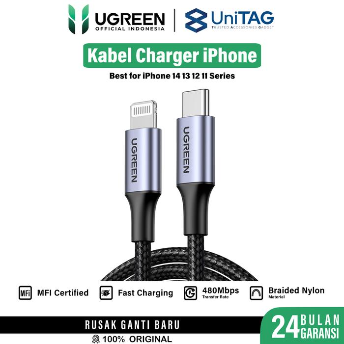 UGREEN Kabel Data Fast Charging iPhone 14 13 12 11 Pro Max Plus Charger USB Type C to Lightning MFi Cable