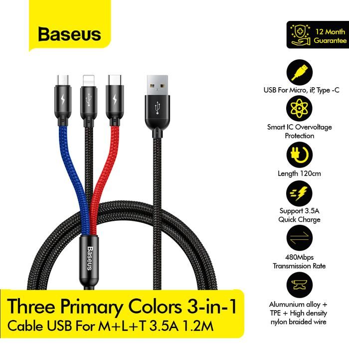 Baseus Kabel Charger Cabang 3 in 1 USB Type A to C/Micro/Lightning