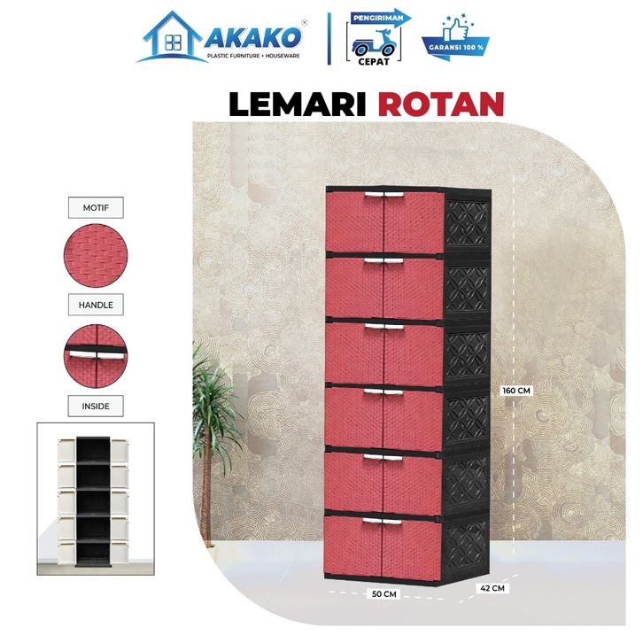 AKAKO - LEMARI PAKAIAN PLASTIK MINI MOTIF ROTAN SUSUN 2, 3, 4 ,5 DAN 6