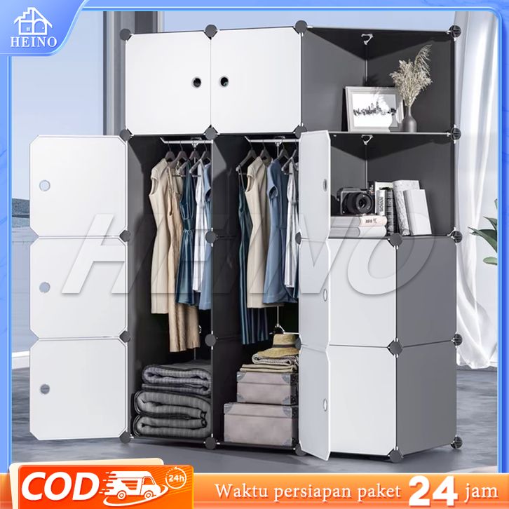 HEINO Lemari Pakaian Plastik / Lemari Baju Plastik DIY Wardrobe Lemari Poratable Anak Rak Baju Dan
