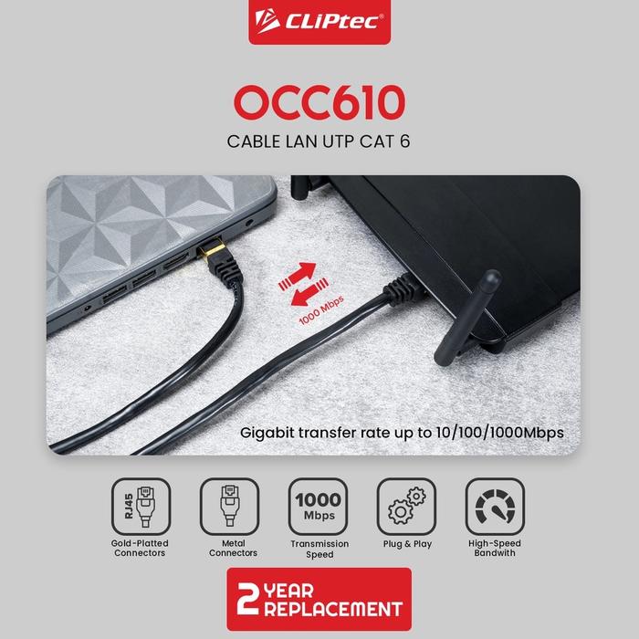 Kabel LAN UTP CAT6 RJ45 Gold Plated Straight 20m CLIPtec OCC 610 Untuk Router Komputer