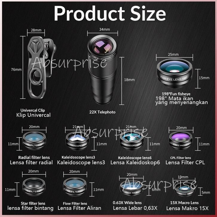 APEXEL 22X Lensa Telefoto 10 in 1 Lensa Kamera Ponsel Dengan Kit Sudut Lebar Makro untuk Smartphone/iPhone Lensa Telefot