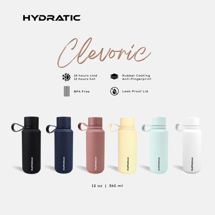 BOTOL MINUM TUMBLER HYDRATIC CLEVORIC 12oz / 360ml - Tahan Panas Dingin 10-16 jam - Stainless Steel Double Wall Vacuum I