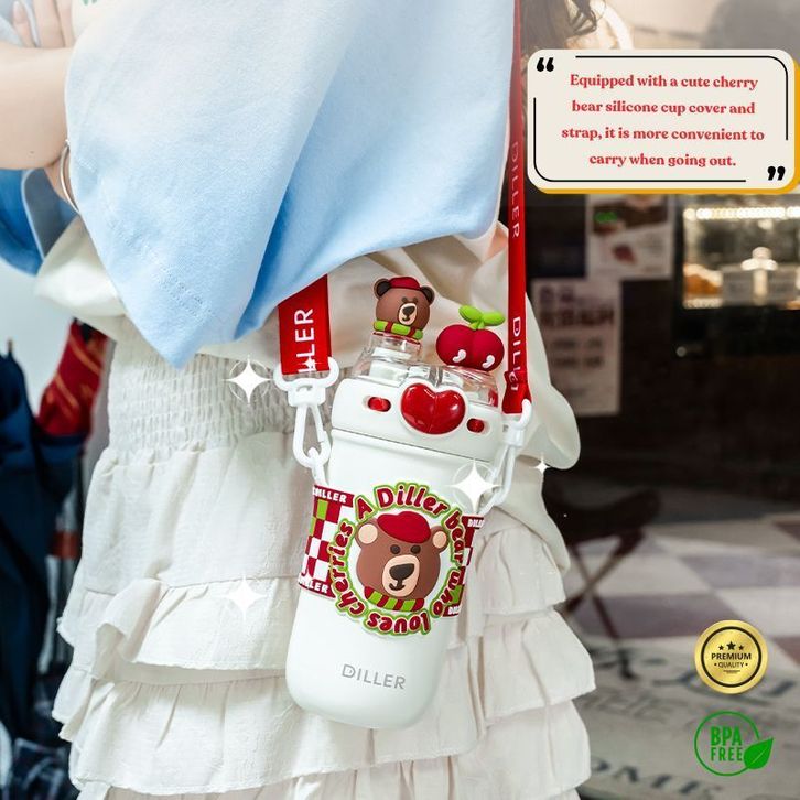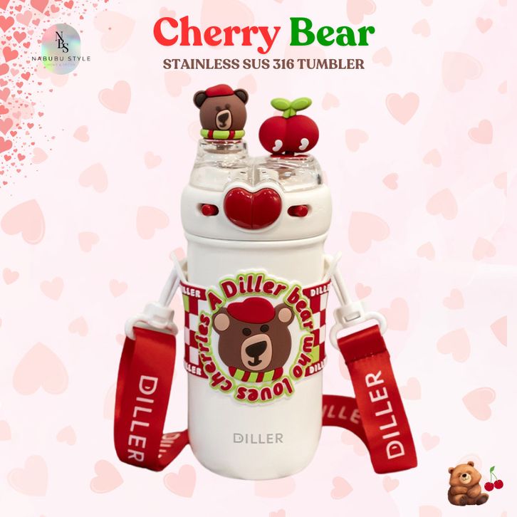 [NABUBU] Botol Minum Cherry Bear 520 ML | Tumbler Lucu Anak Anti Tumpah Stainless SUS 316 BPA Free