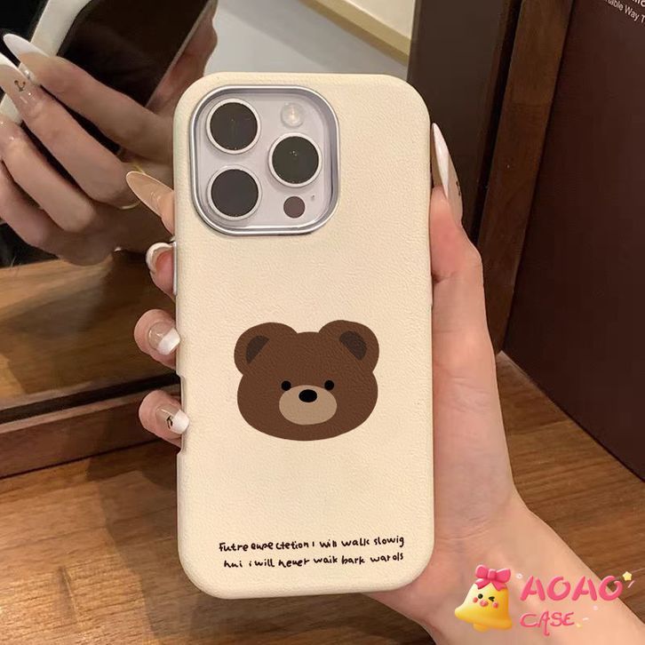 Case HP Untuk IPhone 15 11 12 13 14 Pro Max 7Plus XR 7 8 6 6S 15 14 Plus X XS Max Kartun Lucu Sederhana Kulit Beruang