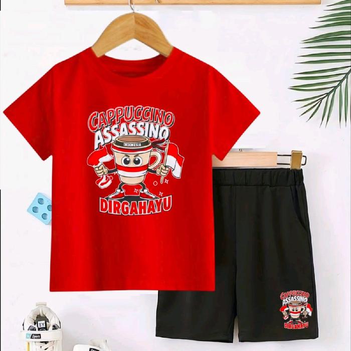 setelan baju anak capuchino assassino tung tung sahur 17 agustus - ninja hitam S 1-2TH