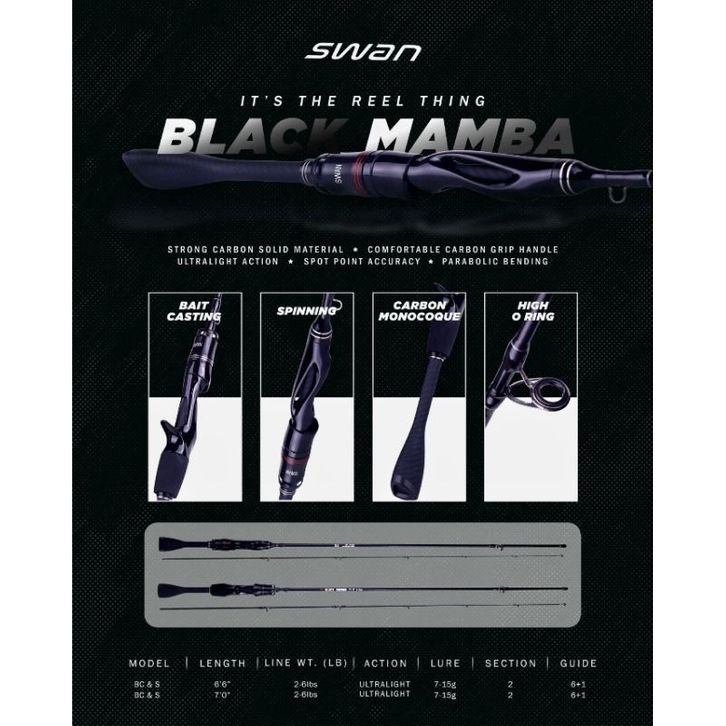 JORAN ULTRALIGHT SWAN BLACK MAMBA 662 702 SPINNING & BAITCASTING