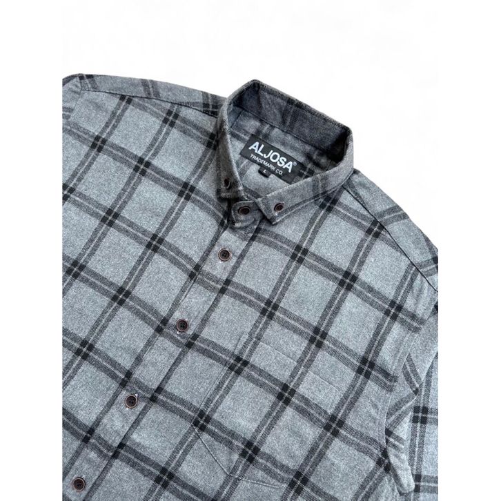 ALJOSA Kemeja Flannel Pria Lengan Panjang Hem Flanel Baju Cowok Motif Kotak Kotak Premium
