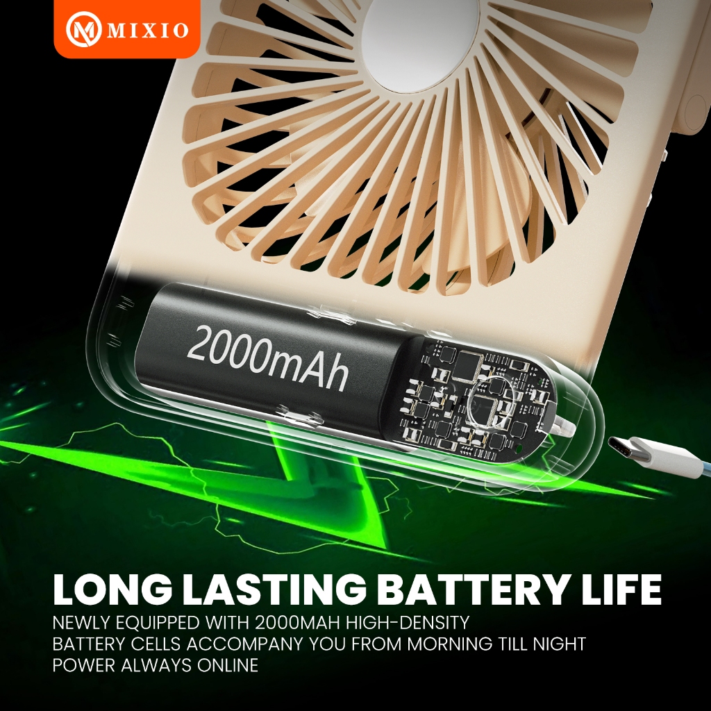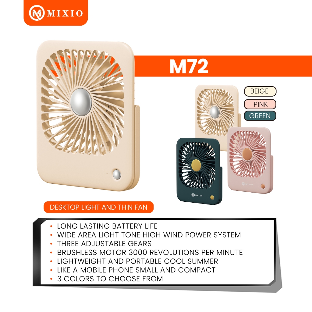 MIXIO M72 KIPAS ANGIN PORTABLE 2000MAH FAN PORTABLE DESKTOP FAN MINIMALIST STAND GANTUNG SUPER SLIM