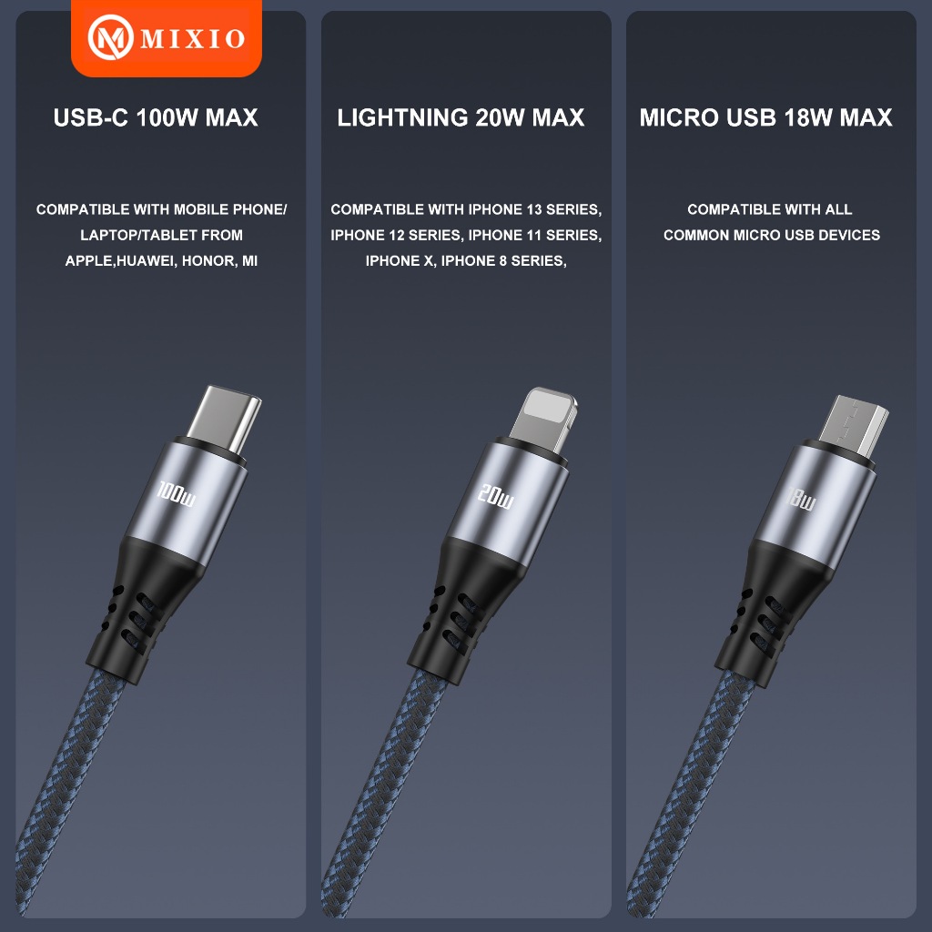 MIXIO KABEL DATA 3IN1 100W FAST CHARGING MICRO LIGHTNING IPHONE TYPEC