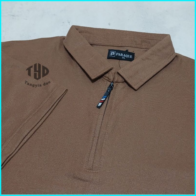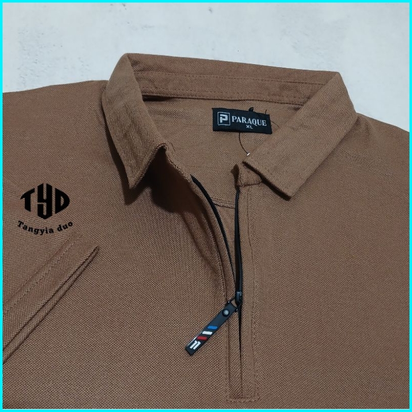 Tangyia Duo - Kaos Polo Shirt Polos Zipper Cokelat M L Xl Xxl