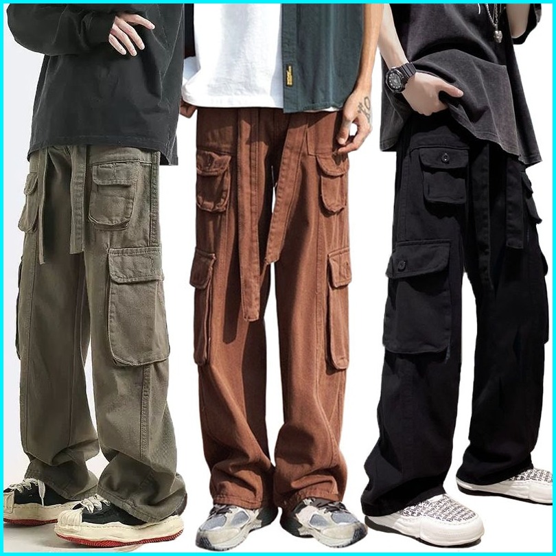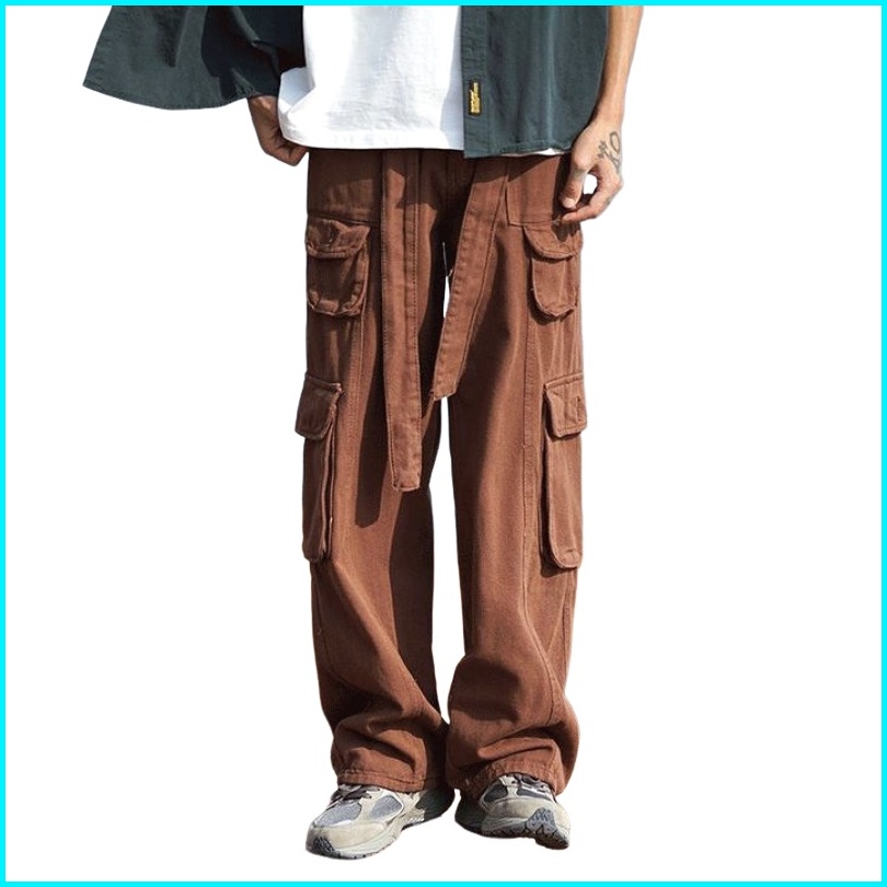 S-2xltermasuk Sabukpria Functional Overalls High Street Overalls Street Hip-hop Overalls Multi-pocket Denim Jeans Pria