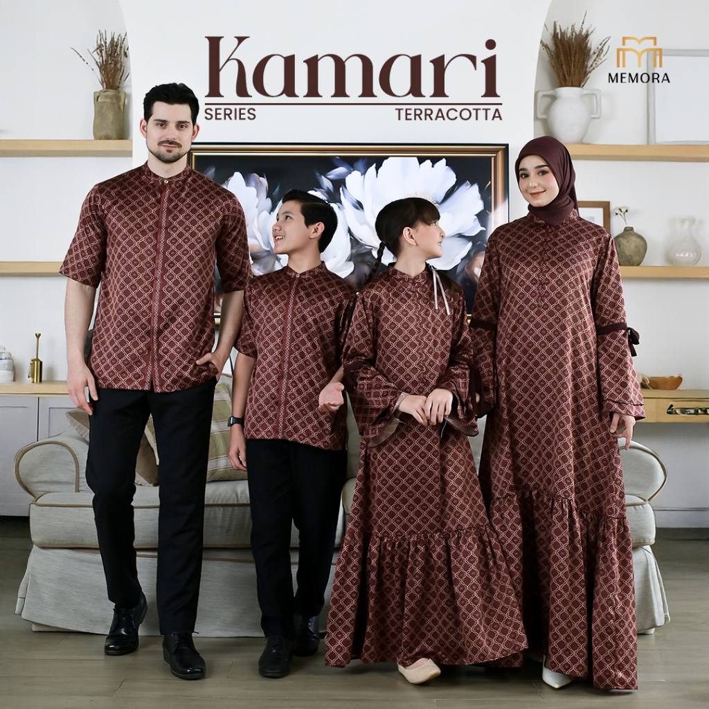 BAJU COUPLE KELUARGA LEBARAN 2025 SERIES KAMARI TERACOTTA BY MEMORA - BAJU SARIMBIT LEBARAN 2025 - ORIGINAL AMANAH - BAJU COUPLE PASANGAN LEBARAN 2025