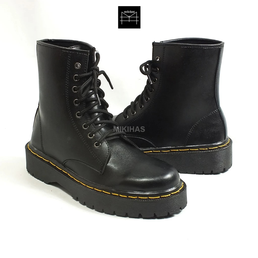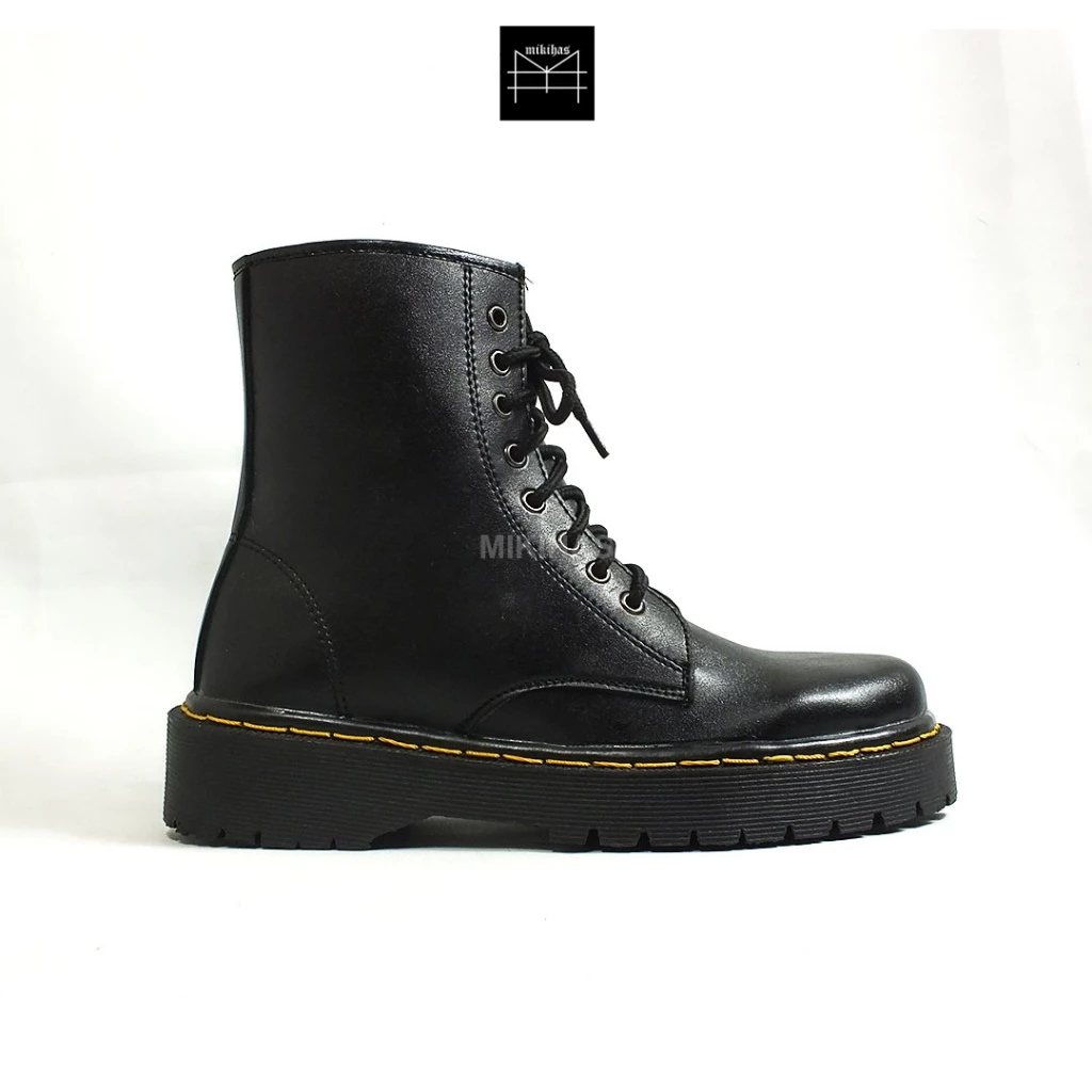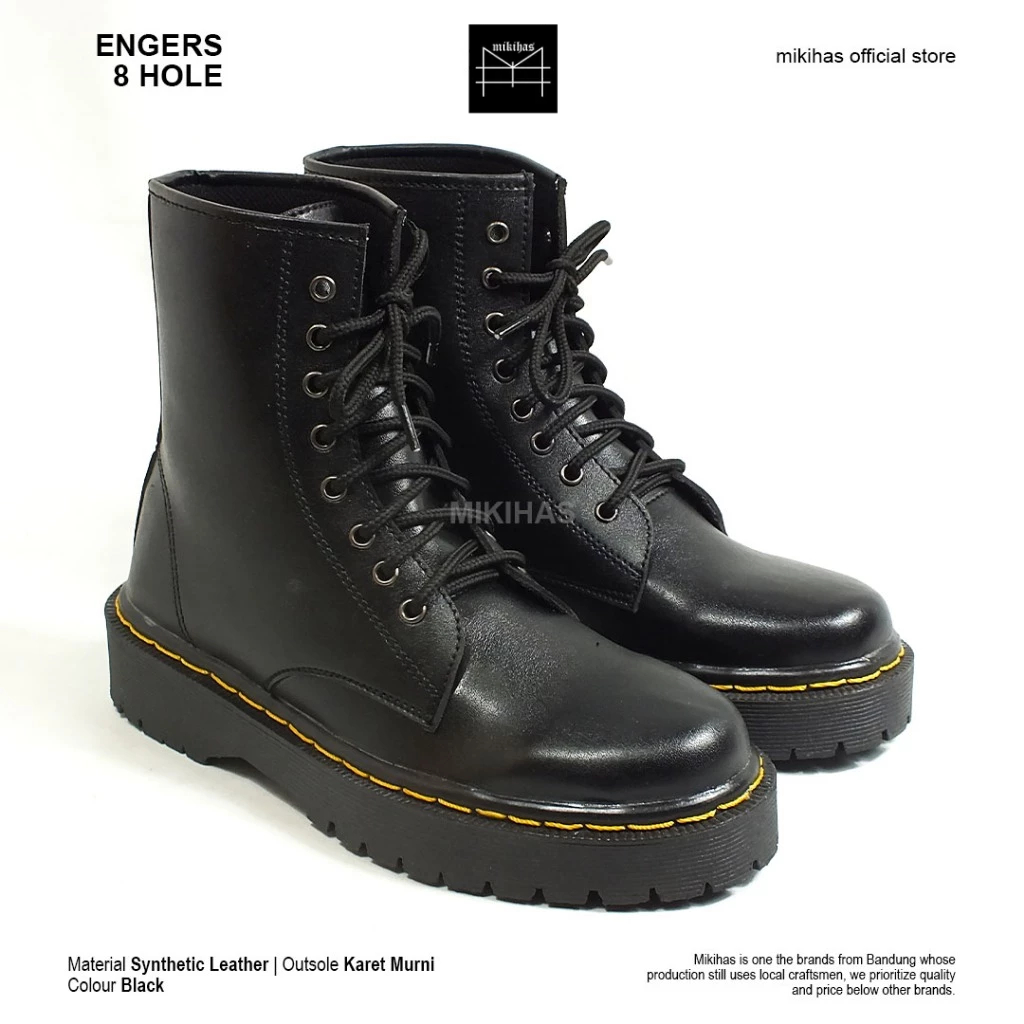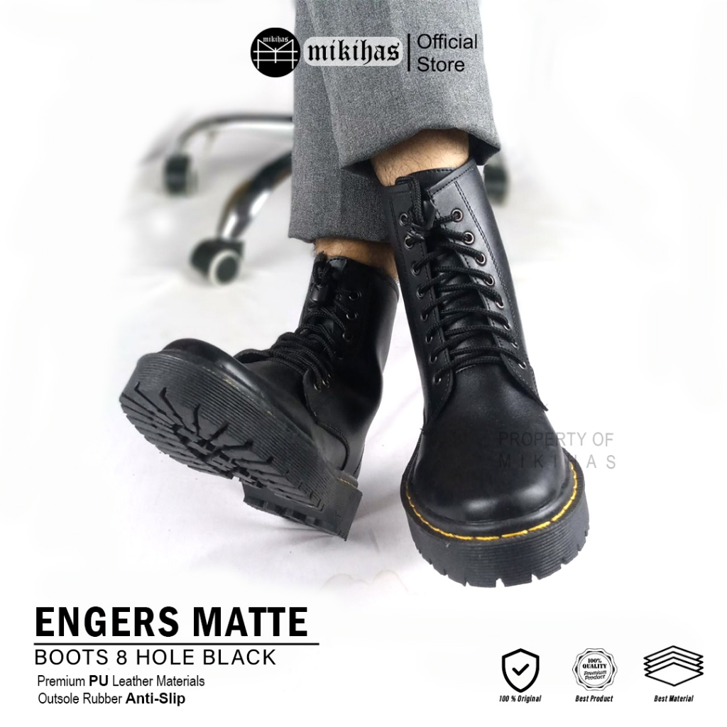 Mikihas - Sepatu Boots Pria 8 Hole Black Engers Matte