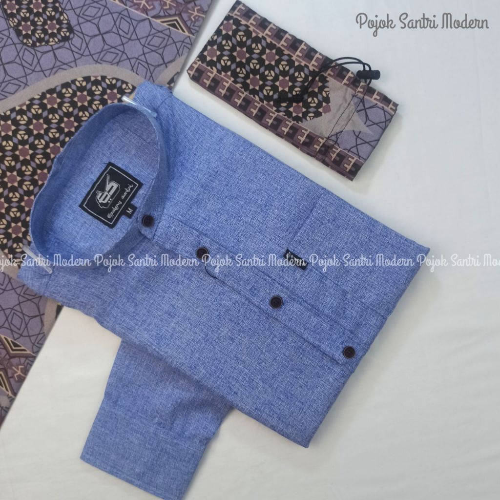 GALERY SANTRI BAJU KOKO PRIA KEMEJA POLOS LENGAN PANJANG KATUN MADINAH KERAH SHANGHAI