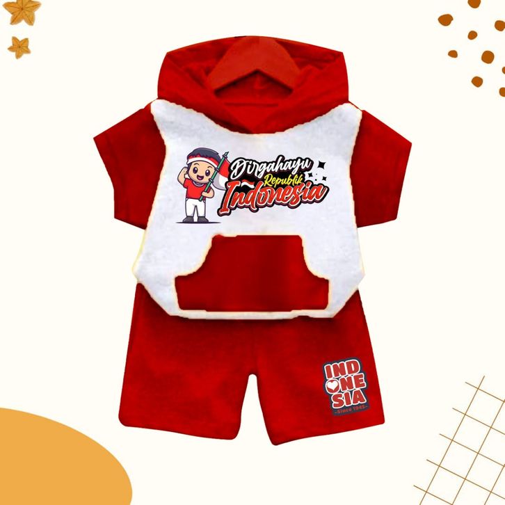 SETELAN ANAK HOODIE CELANA PENDEK KEMERDEKAAN INDONESIA USIA 1-5 TAHUN SET ANAK TERBARU 2025