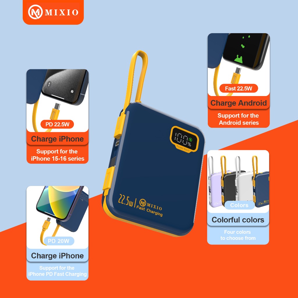 MIXIO MP-08 5000MAH POWERBANK MINI 20W WITH KABEL FAST CHARGING LIGHTNING & TYPE C FOR IPHONE/ANDROID