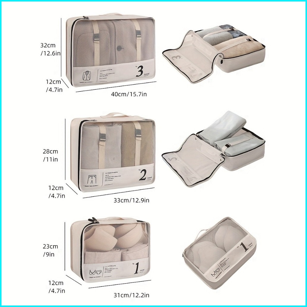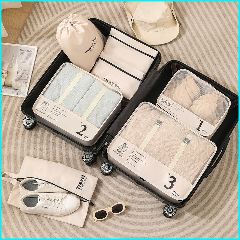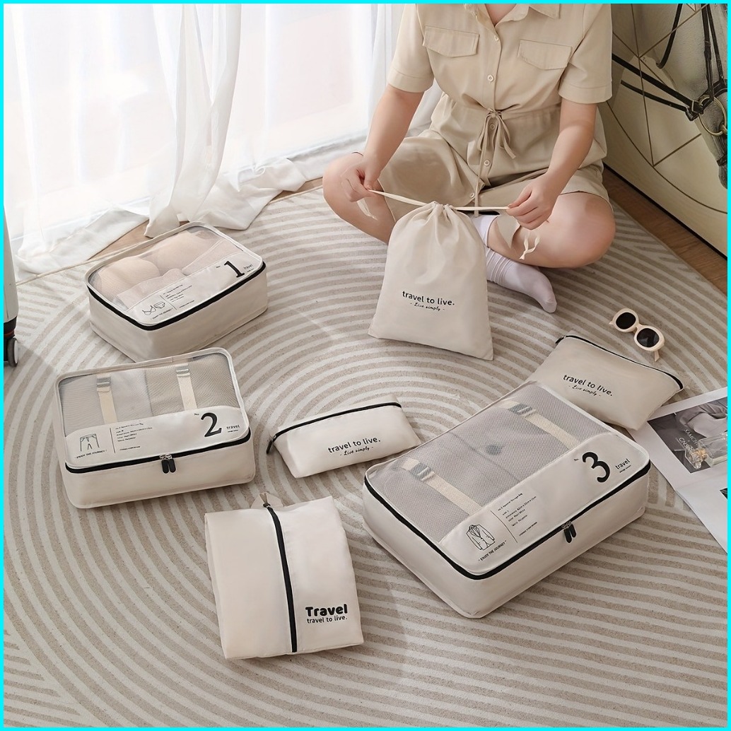 7 In 1 Tas Travel Bag Organizer Packing Cubes Secret Pouch Luggage Organizer Tas Koper Storage Bag Tas Penyimpanan Pakai