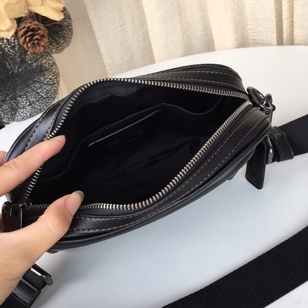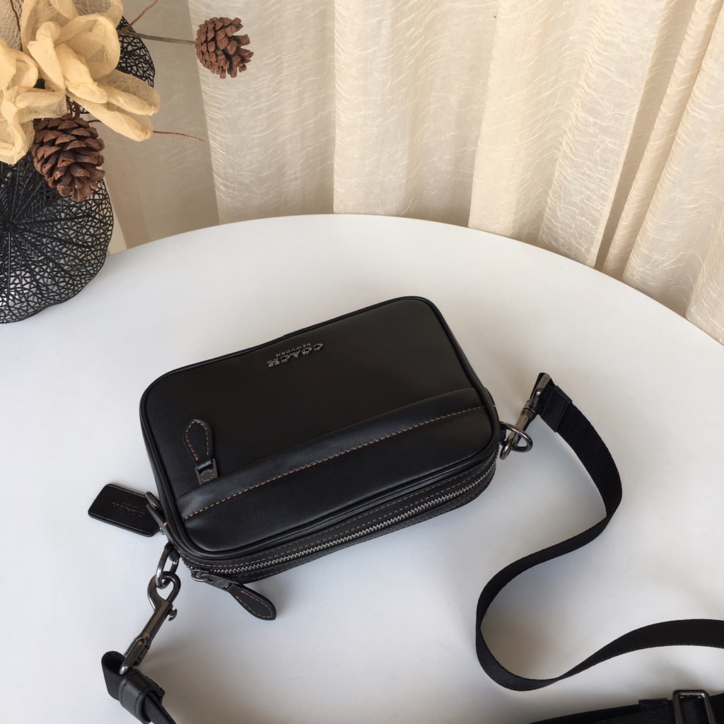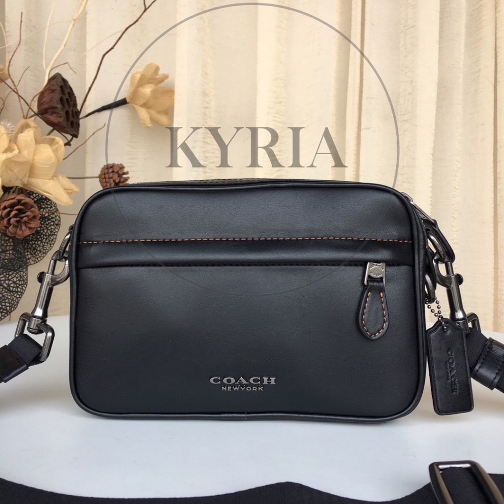 TAS SELEMPANG PRIA COACH TAS BAG MEN PRIA SELEMPANG GRAHAM LEATHER CROSSBODY BLACK PLAIN 39946