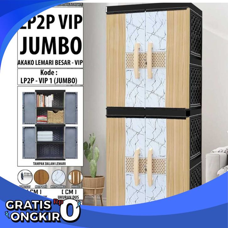 AKAKO - Lemari 2 Pintu LP2P VIP Jumbo Glossy Antigores Motif VIP (NEW ITEM)