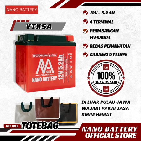Aki Motor Sodium Ion 12V 5.2Ah Aki Motor YTX5A 12.4V 5.2Ah Aki Kering