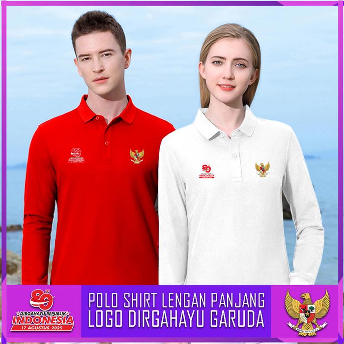 PS | Polo Shirt Lengan Panjang | Kaos Seragaman Dirgahayu Indonesia 17 agustus 2025 - MERAH TANGAN PANJANG M