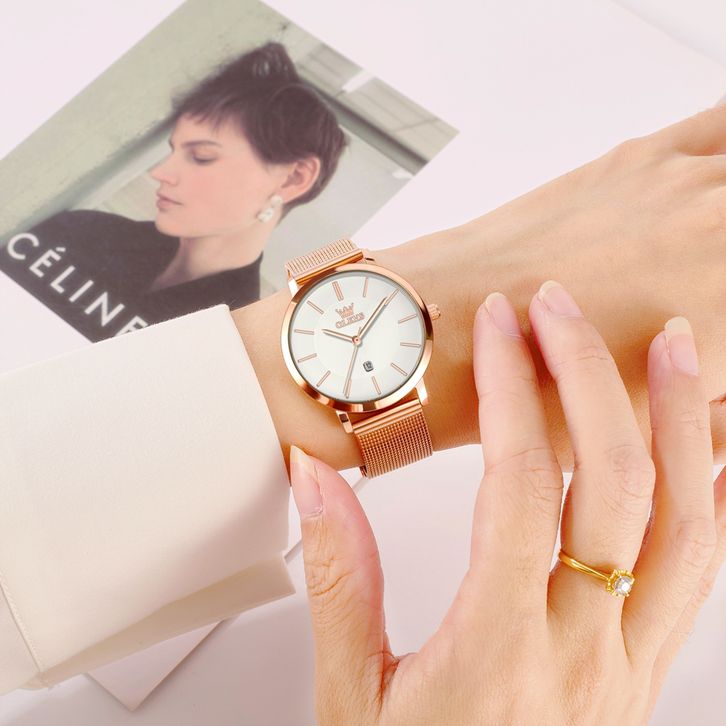 OLEVS Jam Tangan Wanita Original Anti Air Tahan Kecil Branded Elegan Analog Rose Ultra-thin Women Watch