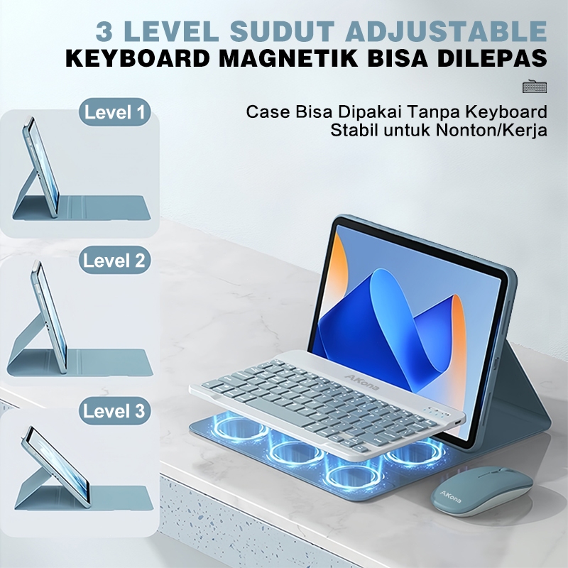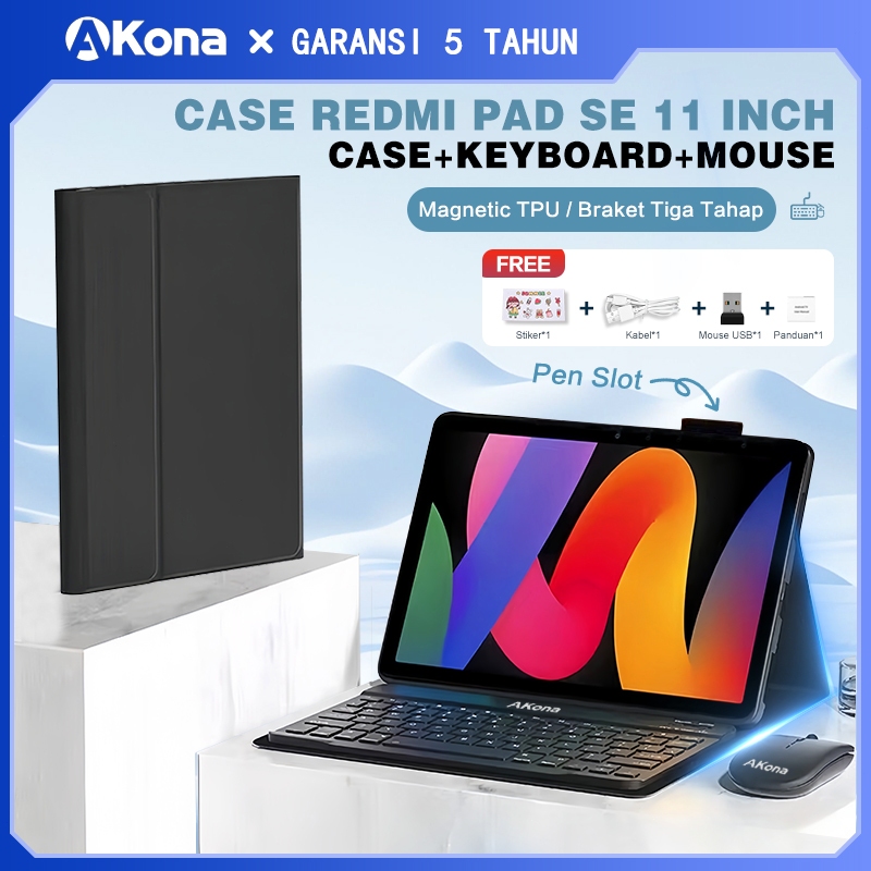 AKONA 3 IN 1 MAGNETIC BLUETOOTH KEYBOARD CASE REDMI PAD SE 11 INCH MOUSE WIRELESS CASING REDMI PAD SE 11 INCH TABLET COVER(FREE STIKER1)
