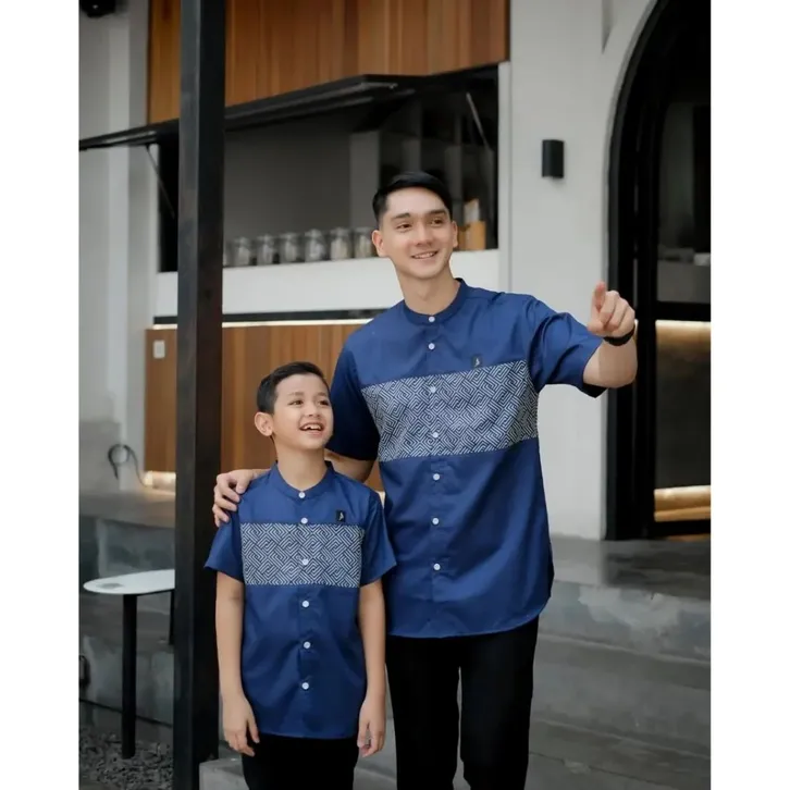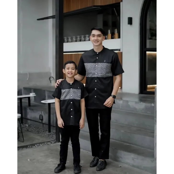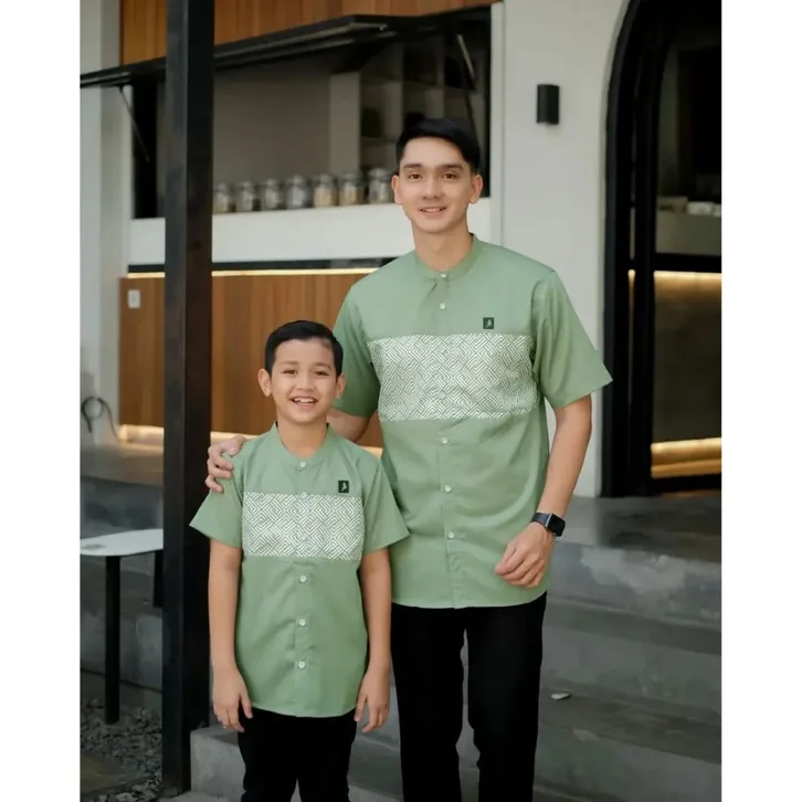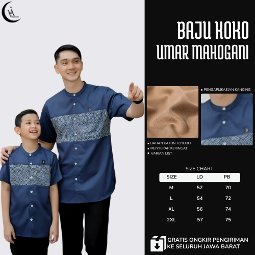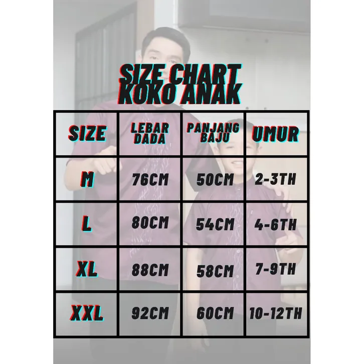 KOKO PRIA DEWASA COUPLE KELUARGA AYAH & ANAK LAKI LAKI MOTIF UMAR MAHOGANI BURGUNDY KATUN TOYOBO BAJU LEBARAN 2026