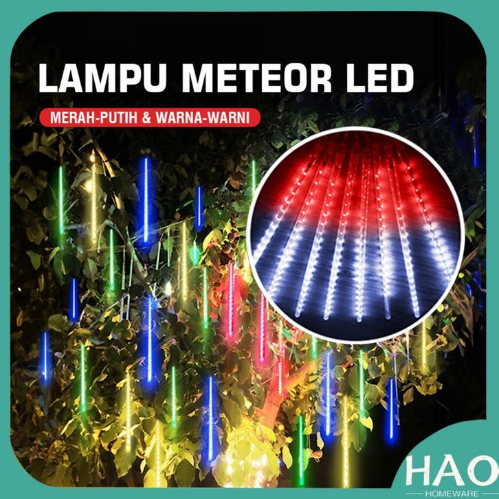 Lampu Meteor LED Merah-Putih 50cm 8 Batang / Lampu Hujan Meteor RGB Jatuh Salju Taman Hias