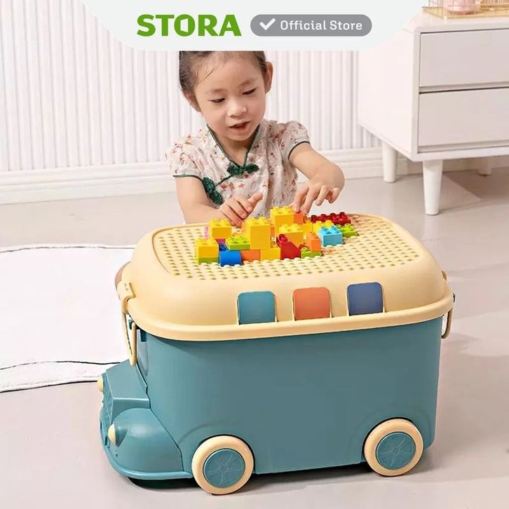 Stora 42.5X31X26 cm Kotak Penyimpanan Dengan Roda Car - Hijau Kids Container Box Kotak Serbaguna Bentuk Mobil