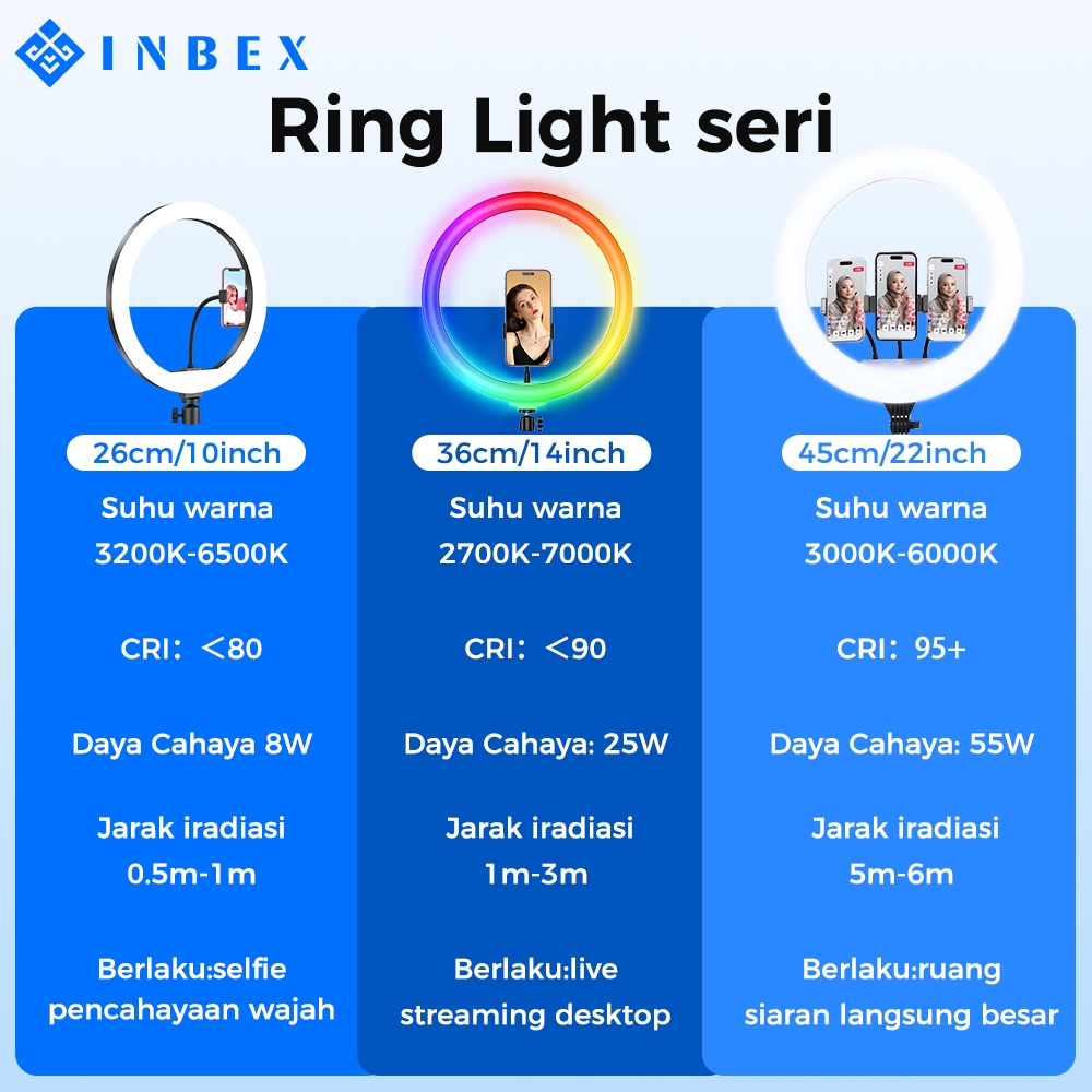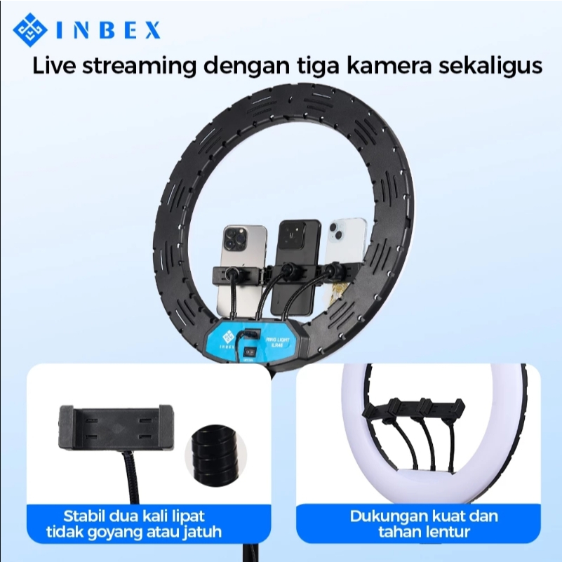 INBEX RING LIGHT BESAR 45CM 26CM TRIPOD 210CM+ 3 HOLDER HP RINGLIGHT TRIPOD KONTEN KREATOR+GRATI REMOTE CONTROL