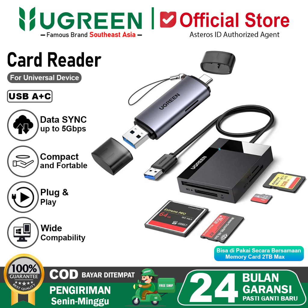 UGREEN Card Reader USB Type C, USB A 3.0 To USB 3.0 SD/TF Card etc