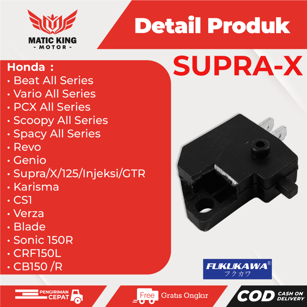 FUKUKAWA SWITCH REM DEPAN KANAN HONDA VARIO BEAT GENIO SCOOPY PCX SPACY SUPRA BLADE REVO CB KARISMA CS1 VERZA FI ESP OLD