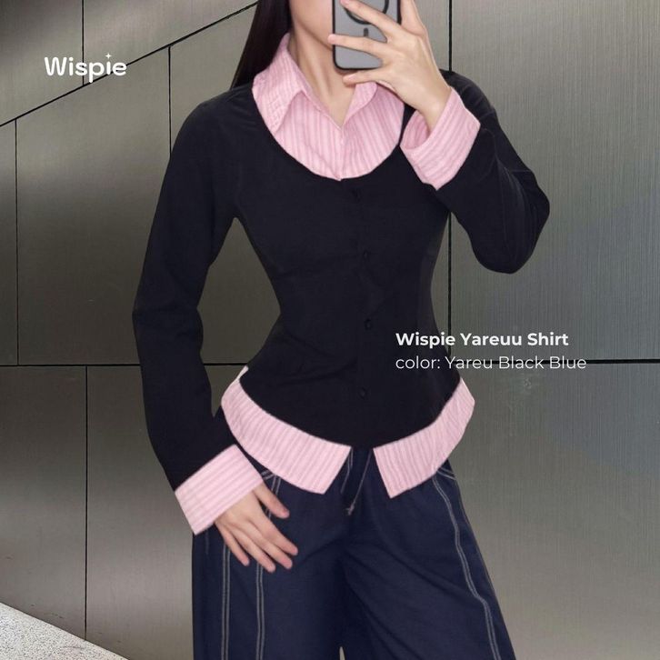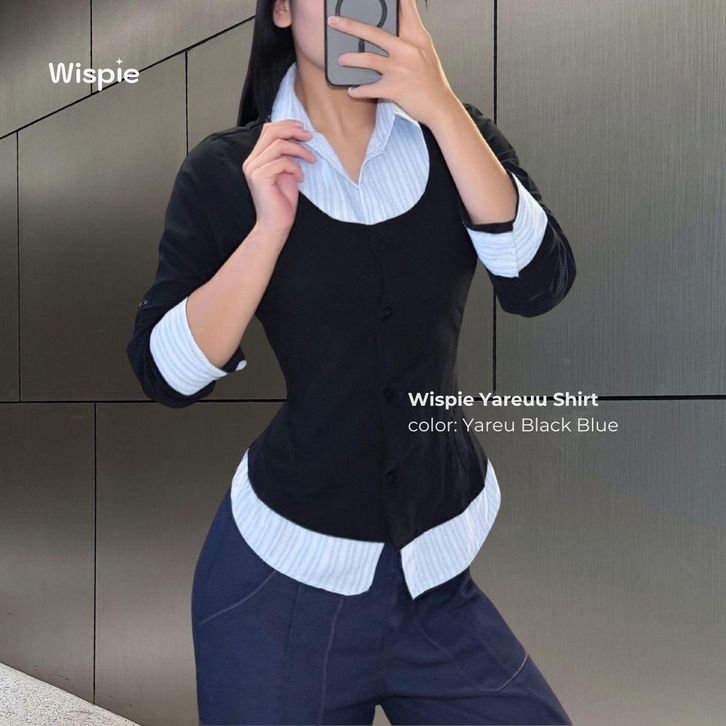 Kemeja Fitted Blouse Wanita Kombinasi Layer 2in1 Wispie