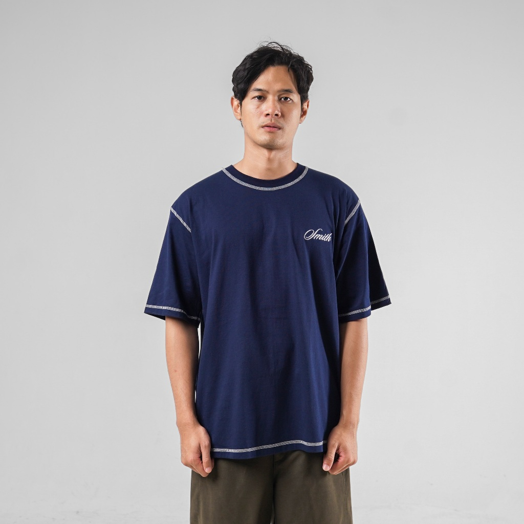 HOUSE OF SMITH ID - KAOS OVERSIZE PRIA LENGAN PENDEK - OVERLOCK STITCH TSHIRT DARK BLUE - BAJU ORIGINAL OFFICIAL STORE
