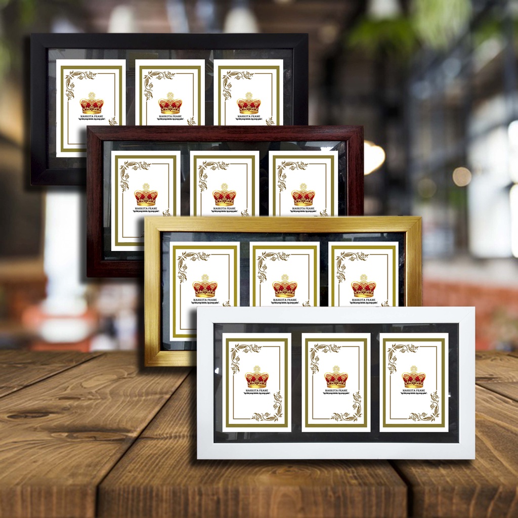 Bingkai Figura Frame 4R 3 IN 1 (susun) Horizontal minimalis Putih/Hitam/Coklat/